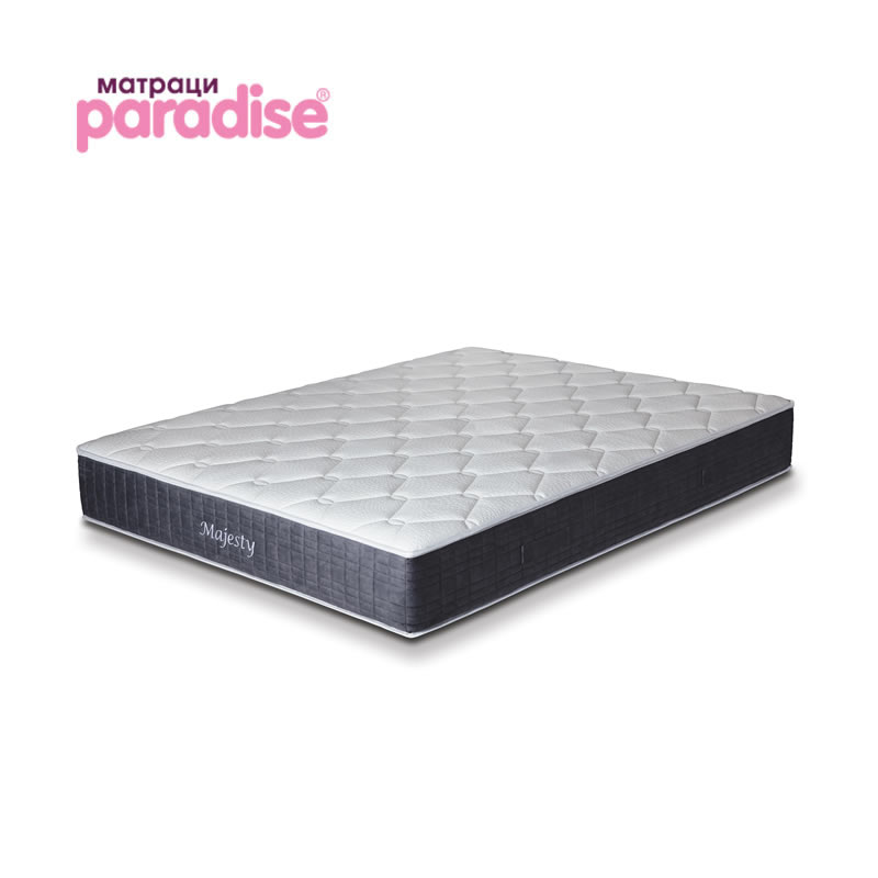 MAJESTY е невероятен модел с елегантен дизайн и неповторимо усещане за комфорт. Ядрото е изцяло от високоеластична пяна, което обуславя добрите ортопедични характеристики на модела. От едната страна на ядрото има слой Memory пяна с охлаждащи гел капсули. Memory Gel пяната се моделира според температурата на тялото и приема формата на неговите извивки, създава приятно чувство за прохлада като осигурява отлична терморегулация на тялото по време на сън. В прошивката от същата страна на ядрото слой от Memory пяна допълва усещането на приятна мекота и комфорт. Другата страна на матрака е със Soft пяна в прошивката и е с по-ортопедични показатели. Различните характеристики от двете страни на матрака дават възможност за избор на усещане за мекота и комфорт според индивидуалните предпочитания.
